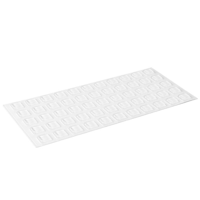Square adhesive bumpers 10x10x2.5 mm that reduce noise and protect surfaces.