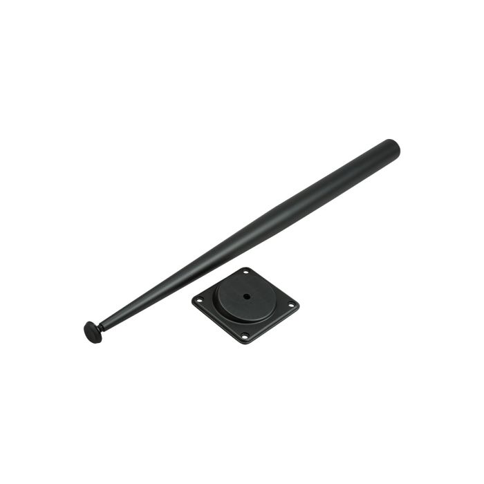 Conical table leg made of powder-coated steel with a matt black finish. Ø42 mm top, Ø14 mm bottom, height 700 mm. Supplied with angled mounting plate – ensures stable installation.