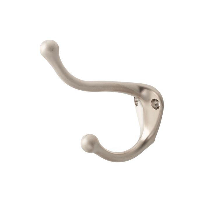 Hook / Coat Hook 'Bremm' made of Zamak in Matt Nickel, double hook for wall mounting with two screws from the front.