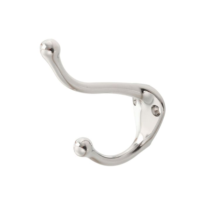 Hook / Coat Hook 'Bremm' made of Zamak in Polished Chrome, double hook for wall installation with two front-mounted screws.