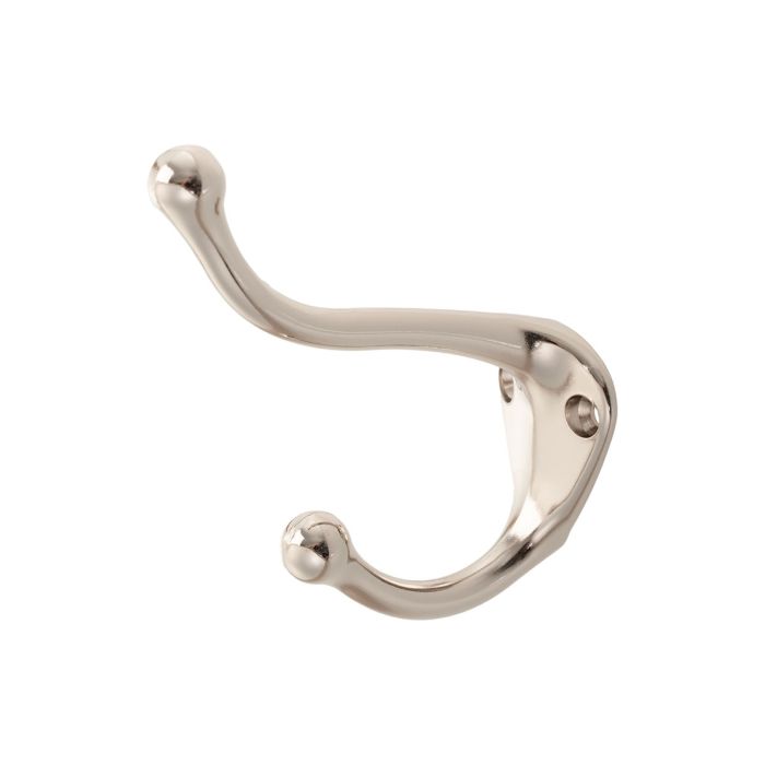 Hook / Coat Hook 'Bremm' made of Zamak in Polished Nickel finish, double hook for wall installation with two front screws.