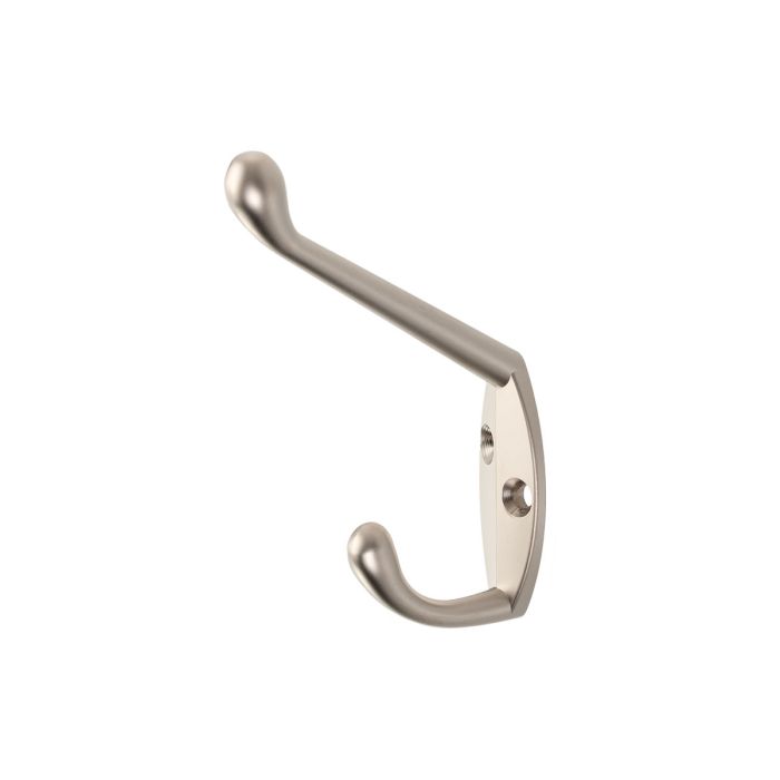 Hook / Coat Hanger 'Enzen' made of Zamak, Matt Nickel. Mounted with two front-facing screws.
