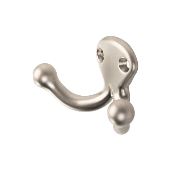 Hook / Coat Hanger 'Rysum' made of Zamak, Matt Nickel. Mounted with two front-facing screws.