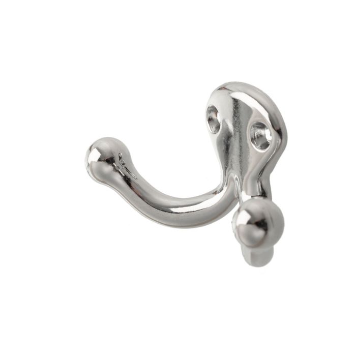 Hook / Coat Hanger 'Rysum' made of Zamak, Polished Chrome. Mounted with two front-facing screws.