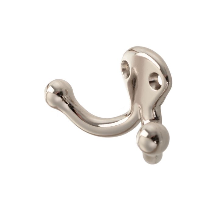 Hook / Coat Hanger 'Rysum' made of Zamak, Polished Nickel. Mounted with two front-facing screws.