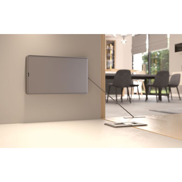 Kiaro Easy Strong is a robust concealed opening system for heavier drop-down doors. Technical wire mechanism provides stability and long service life. Easy to install and adjust on both sides. Supplied as a complete set in grey. Supplied with dual brackets for recessed or surface mounting.